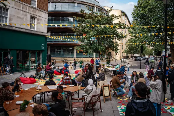 The month-long activation of Nutford Place tested different methods of animating the space through play-focused activities, cultural programming, and community engagement sessions tailored to diverse audiences. Early consultation included Hampden Gurney Primary School PTA and outreach to ward councillors and community groups such as the Marylebone Bangladeshi Society, Mosaic Community Trust, and Hyde Park Estate Residents Association. Partnerships with local businesses provided logistical support and food contributions.