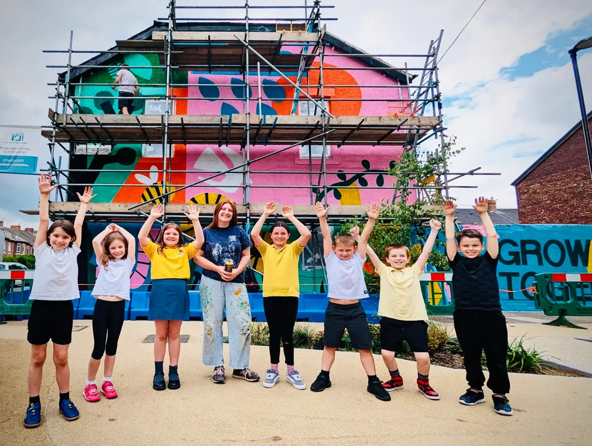 Chillizens Play Pocket transforms an overlooked corner beside Chillingham Road Primary School into a safe, green and joyful space for children and families. Co-designed with pupils, it introduces rain gardens, playful routes, sociable seating and a vibrant mural created with the school’s Chillizens. The space encourages walking and cycling, improves air quality, supports wildlife and creates a calmer, healthier school arrival experience. As a permanent pilot, it will shape four further play pockets planned across Newcastle East, strengthening children’s wellbeing across the neighbourhood.