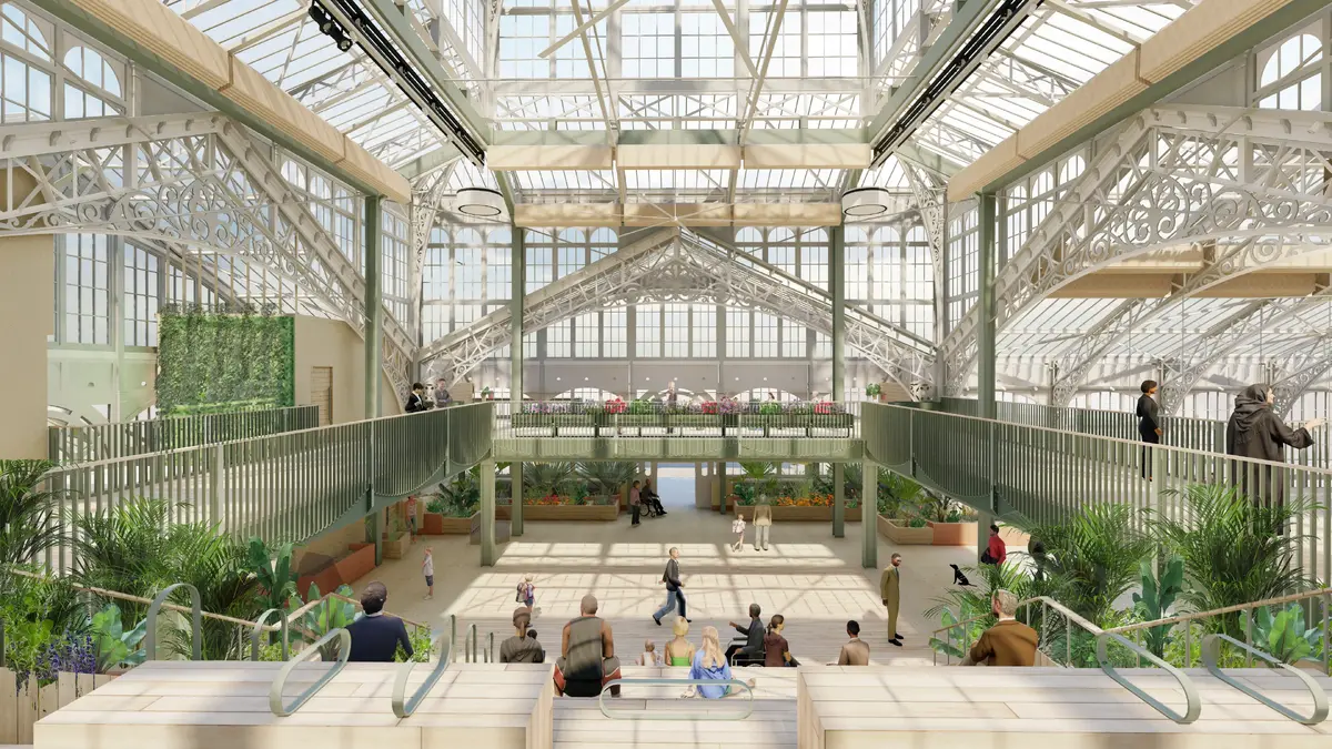The restored Winter Gardens is designed to be a vibrant, inclusive and flexible public environment, blending planting, hospitality, culture, wellbeing and everyday community use under one spectacular roof. The building will offer food and drink spaces, a flexible performance and events hall, a learning and activity space, and layered planting that provides atmosphere, seasonal change and visual drama. The architectural approach restores the cast-iron frame and reinstates the building’s original lightness and transparency, while introducing new timber and glazing elements that sit quietly within the historic volume. A new first-floor gallery weaves through the structure, offering views across the planting and out to the beach and sea. At the heart of the building, a generous “hellerup” stair becomes a social terrace; a place to gather, sit, listen, watch and meet.