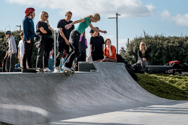 Roller-skating in the park is Polly Webster, a 24-year-old who studies at Brighton University. She says the area’s roller rink, thought to be one of the UK’s first, is helping shift its user demographic. “It’s more attractive to young women and girls,” she explains, adding that they are then emboldened to try out the skate park too.