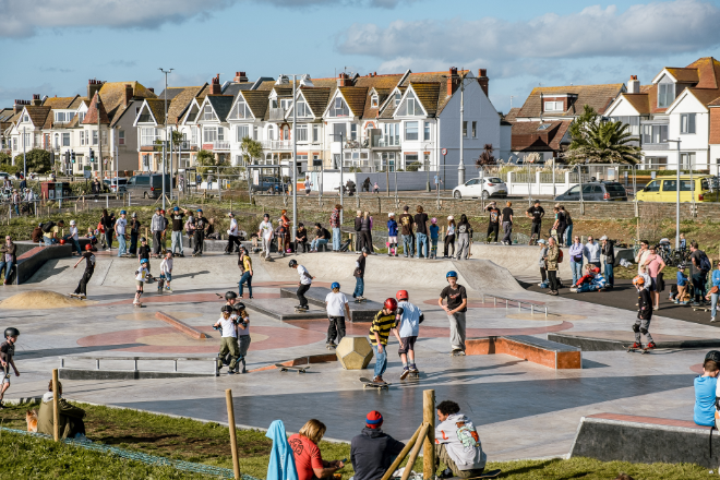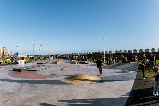 The park will end at Hove Lagoon, where the first section has already been completed: a wheeled sports area with a roller rink, BMX pump track and a “plaza”-style skate park, designed by Maverick Skateparks alongside Liam Teague, manager of Brighton’s BYC Skatepark, and the council’s Ricardo Magee. It’s an offering to rival central Brighton’s famous Level and replaces an old facility that was tucked around the back of the Lagoon’s Big Beach Cafe, owned by DJ Norman Cook, aka Fatboy Slim.