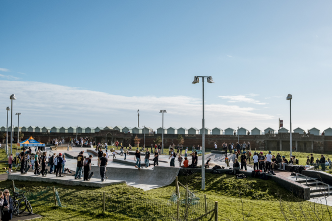 In contrast to projects like the i360, the circular viewing gallery that charges tourists £16 a time and has filed for insolvency, the new park is public and aimed squarely at local people in the west of the city. Its first phase, a new skate park and roller rink, is already teeming with kids.