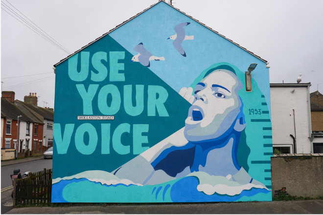 Local campaigners in Lowestoft wrote postcards in the sand to Rishi Sunak earlier this year, saying “don’t let us drown”, and they have painted murals in the town saying “use your voice”, to inspire action