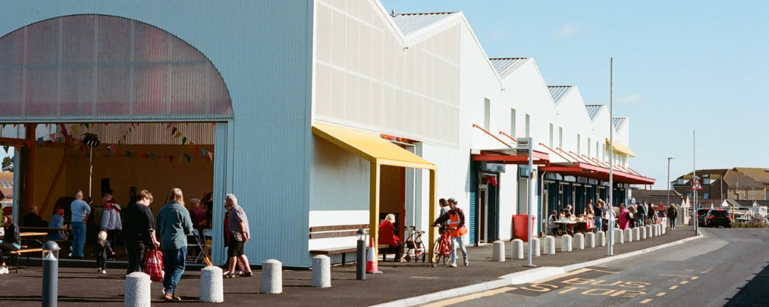 The immediate development was Sunspot, a new thriving “long-meanwhile” hub to generate local opportunity with 24 affordable business units and, alongside it, a new bus stop and public toilets. The building’s sunny outlook is a positive beacon of hope.