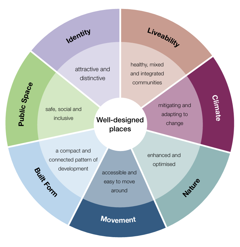 Well, good placemaking is much more front and centre. The places section has been rewritten and is much clearer on what is expected. It also relates to a wider range of other topics that impact on quality placemaking – with human connection, nature and accessibility in mind.