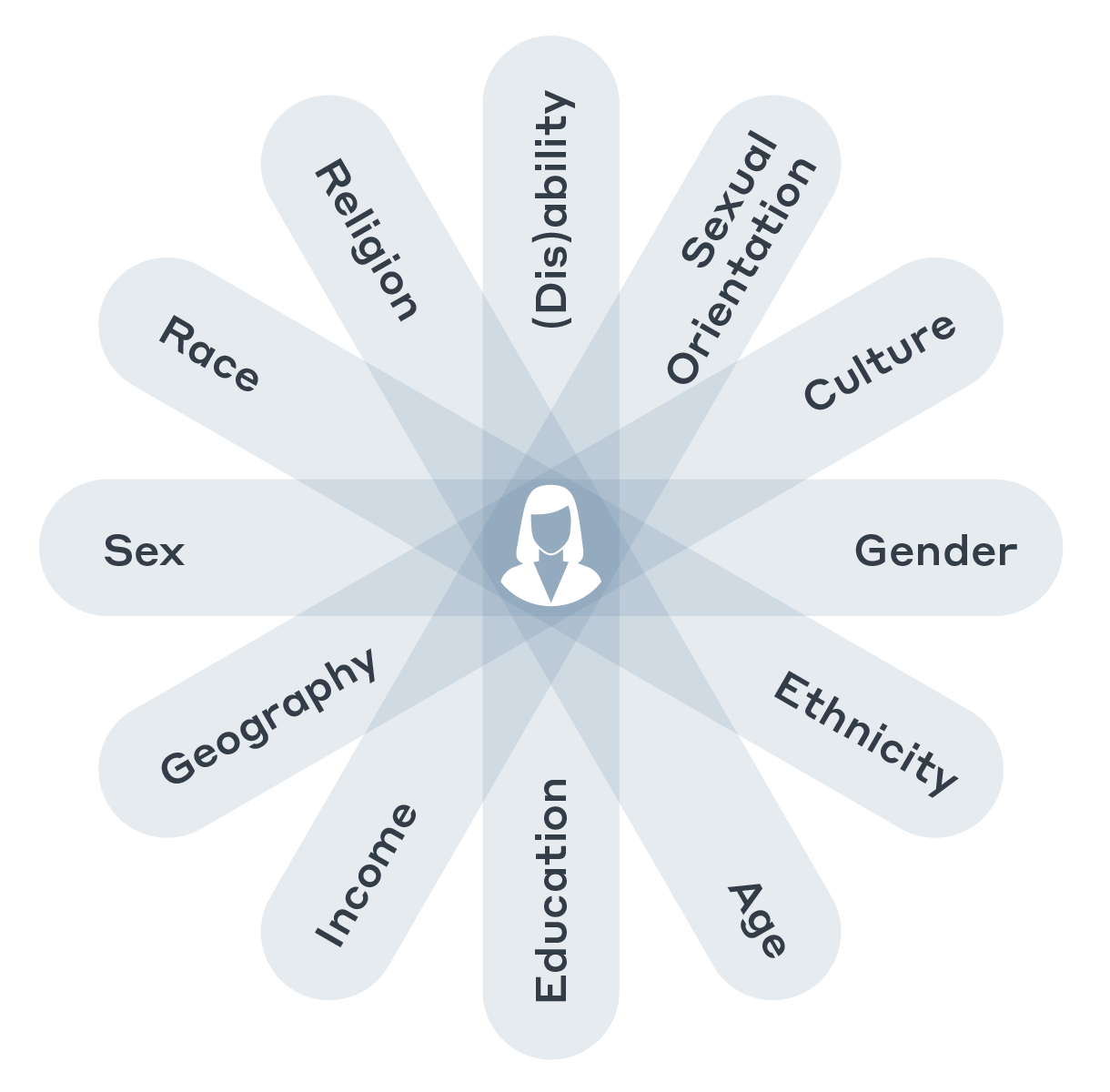 An intersectional approach acknowledges that each person’s interaction with a public space is shaped by the simultaneous influence of their multiple, co-existing identities, which inform their unique needs, backgrounds, and experiences (adapted from Crenshaw, 1989).