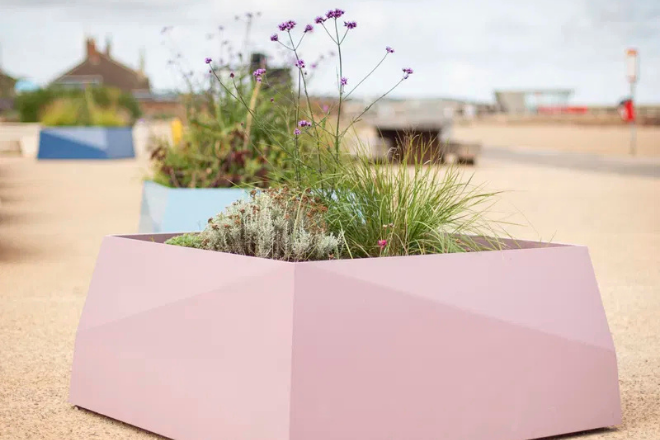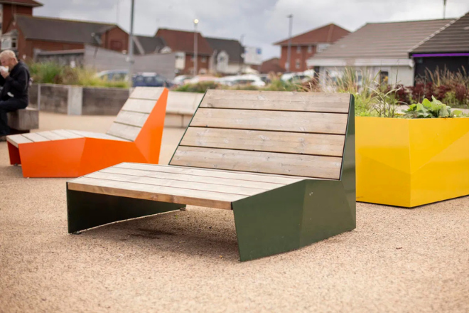 Dorian says that, “The range of colours offered was also an important factor, allowing us to add pops of colour to the newly designed public realm. Their BLOC sun benches were chosen for ergonomic comfort and to support flexible use by a range of users, and the large BLOC planters have allowed planting to become a key element of the space.”